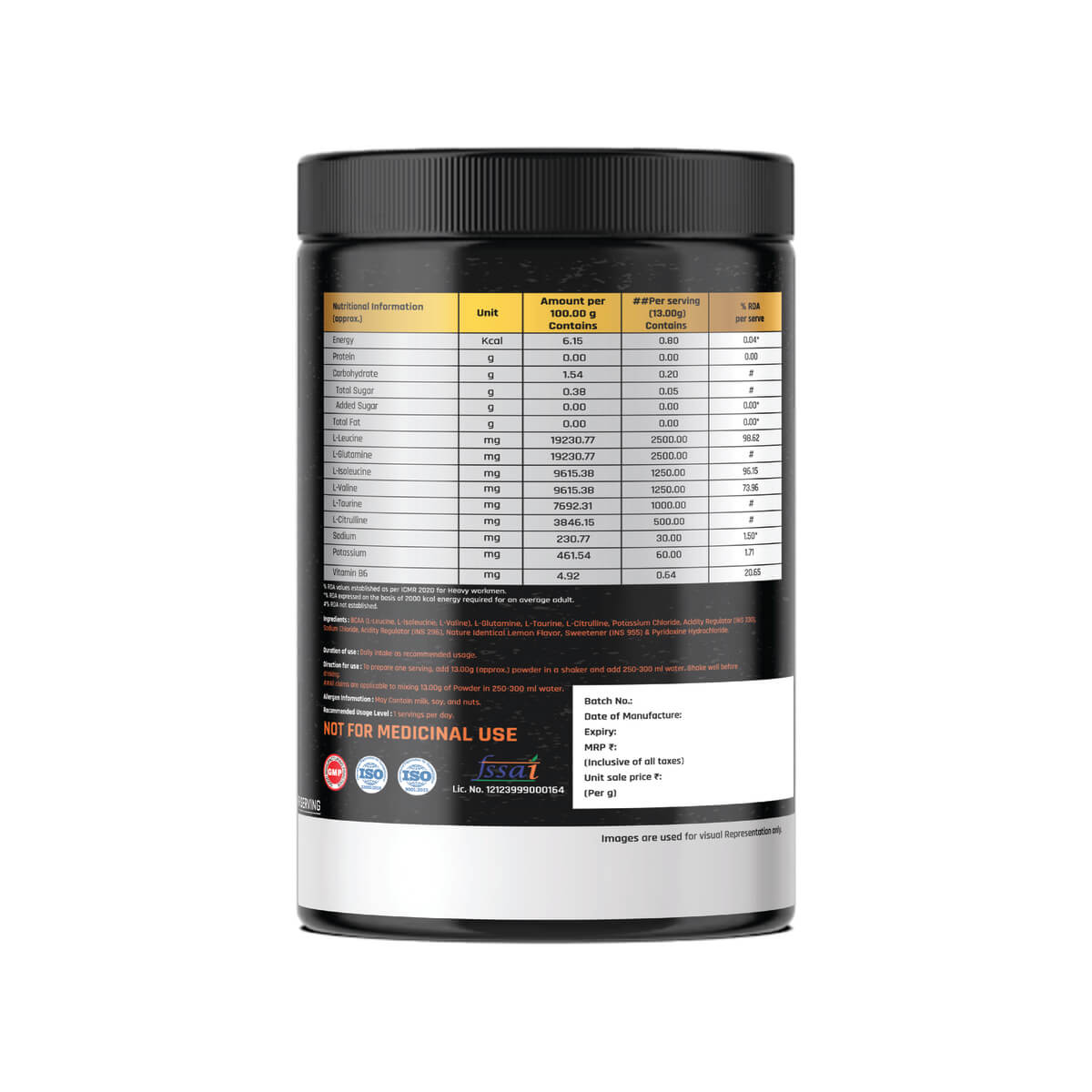 - Rapid Absorption: Our Lemon Zest BCAA Powder is designed for swift absorption, ensuring your muscles receive the vital nutrients they need promptly. This means your body gets the support it craves right when it matters most.