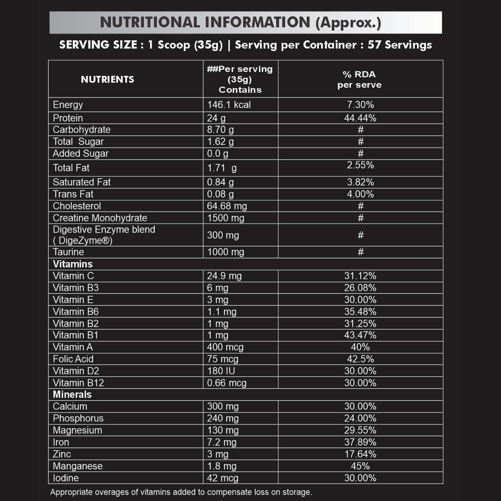 | Protein | WHEY PROTEIN BLEND (WHEY PROTEIN ISOLATE & WHEY PROTEIN CONCENTRATE) |